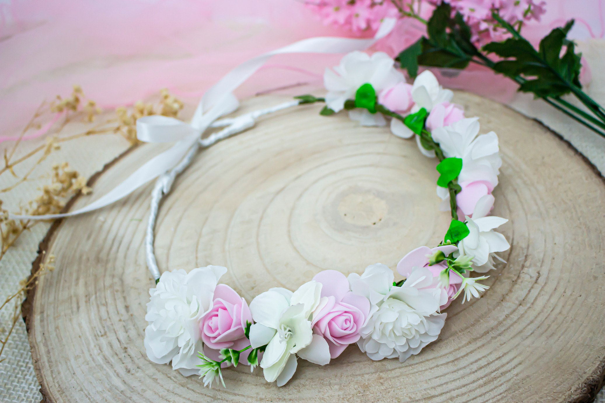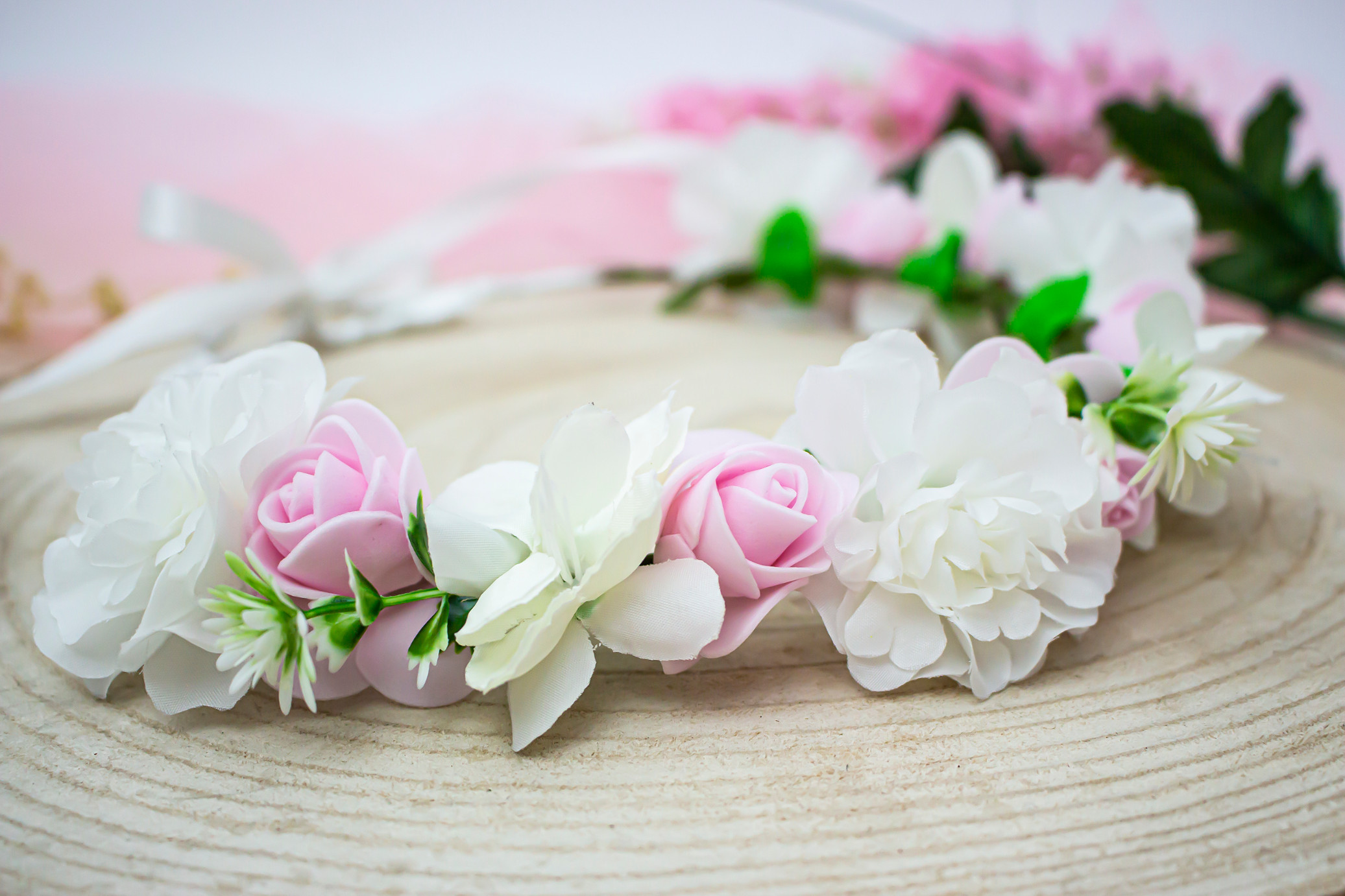 ? Wianek kwiatowy w stylu boho – biało-różowy ?