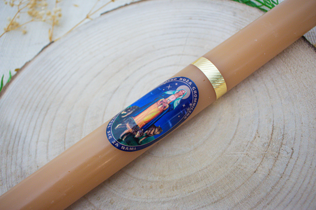 Świeca gromnica w kolorze karmelowym to symbol ochrony, ciepła i modlitwy, który od wieków jest obecny w polskiej tradycji. Wykorzystywana podczas święta Matki Boskiej Gromnicznej, obchodzonego 2 lutego, towarzyszy wiernym również w codziennym życiu. W wielu domach gromnicę zapala się nie tylko w dniu święta, ale także podczas modlitwy oraz w ważnych momentach życia rodzinnego. Jej piękny karmelowy odcień przypomina o świetle, które rozprasza mrok, a sama świeca pełni funkcję ochronną, modlitewną i sakralną, będąc wyrazem głębokiej wiary i tradycji.
