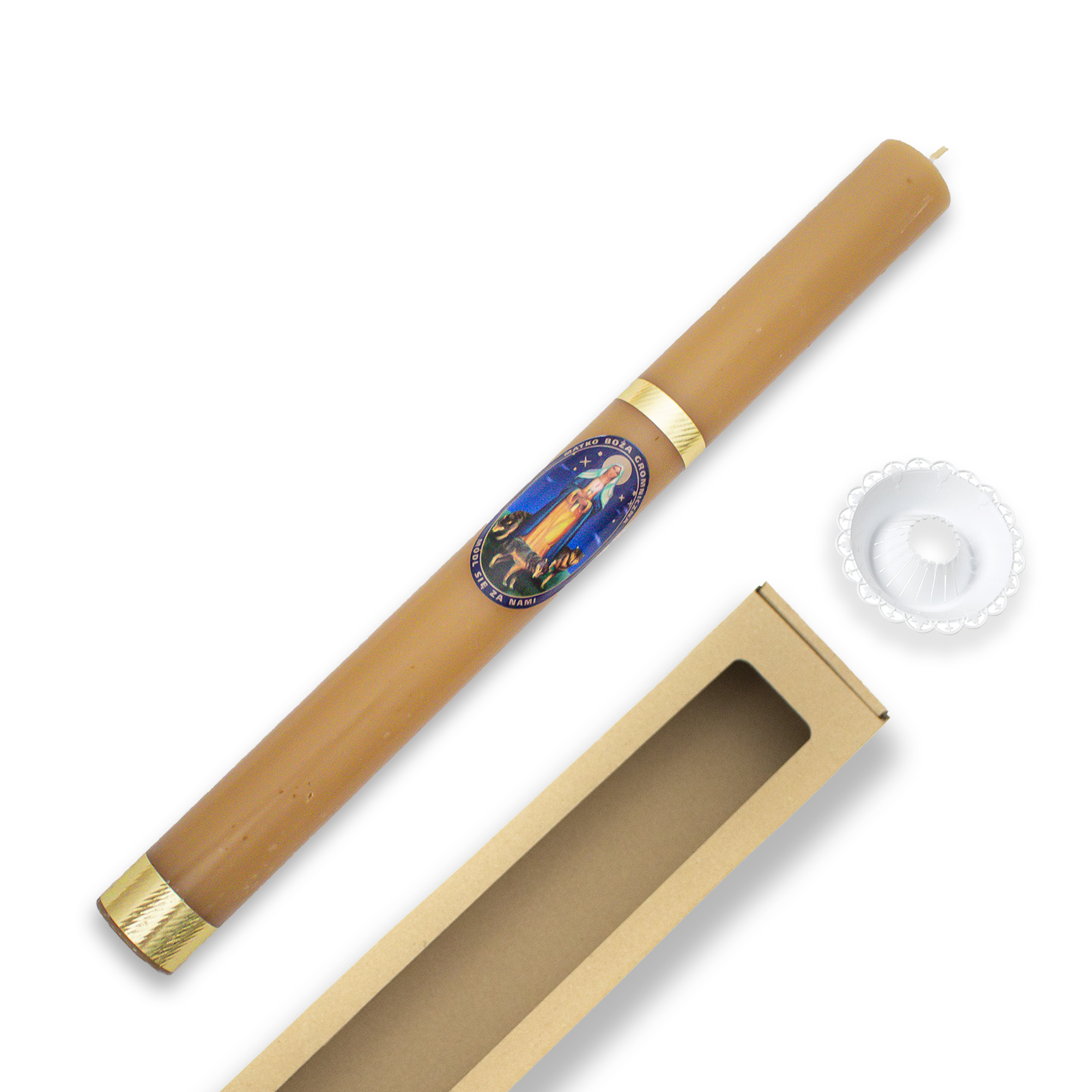 Klasyczna Gromnica świeca Matki Boskiej Gromnicznej z pudełkiem i okapnikiem