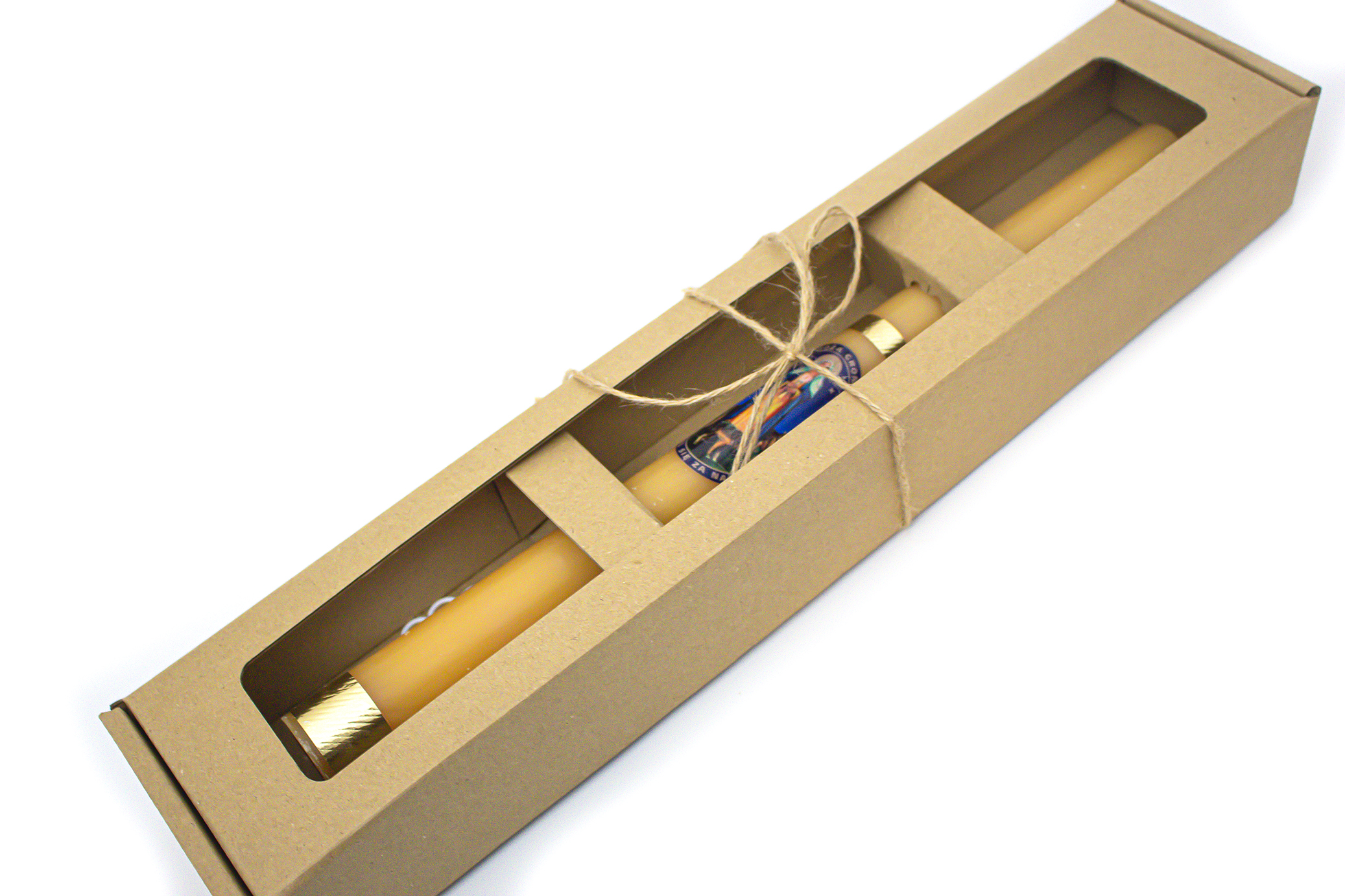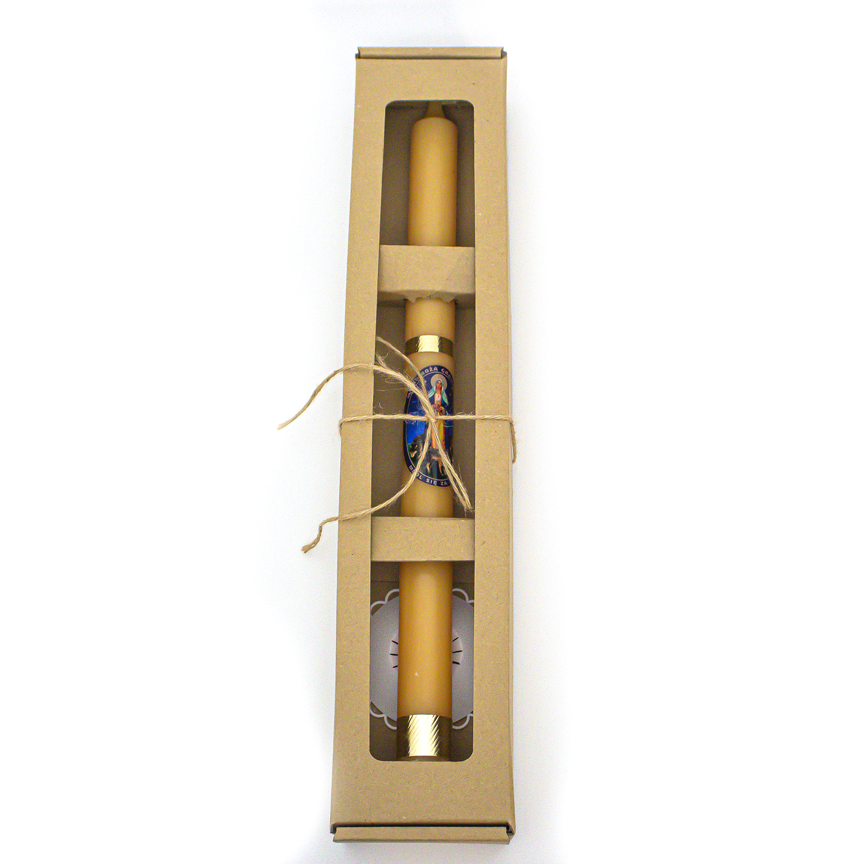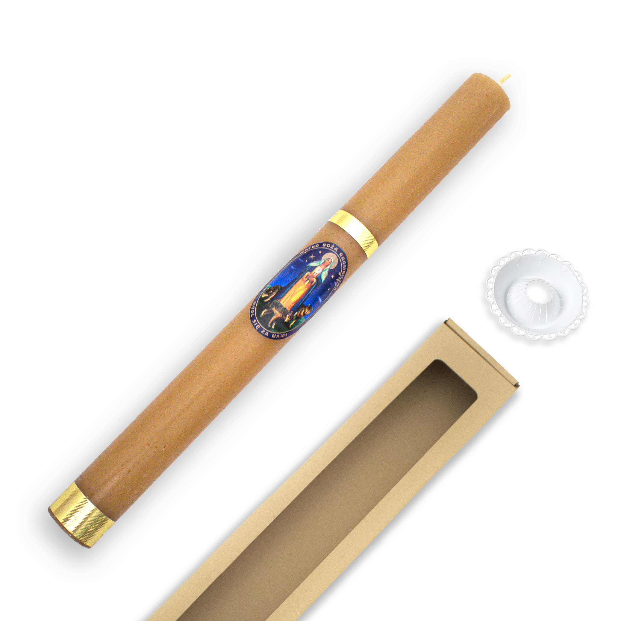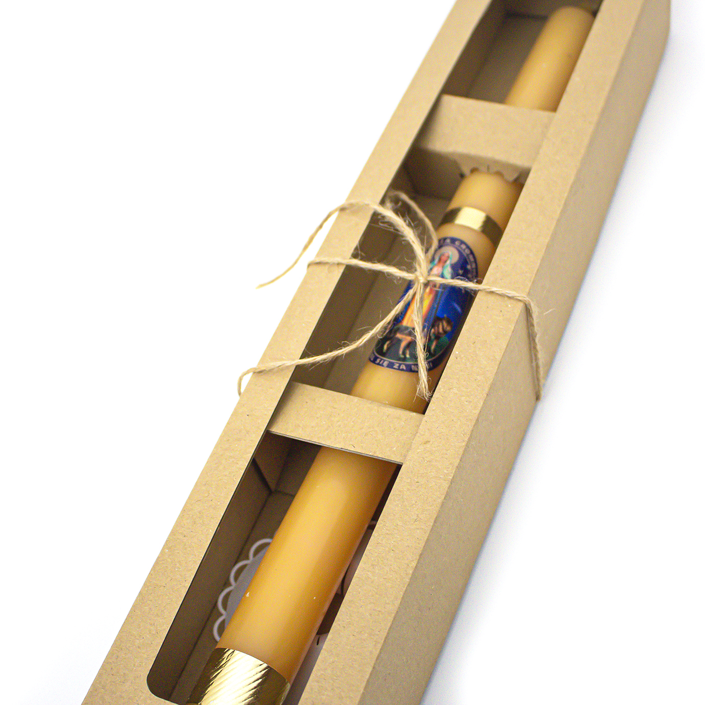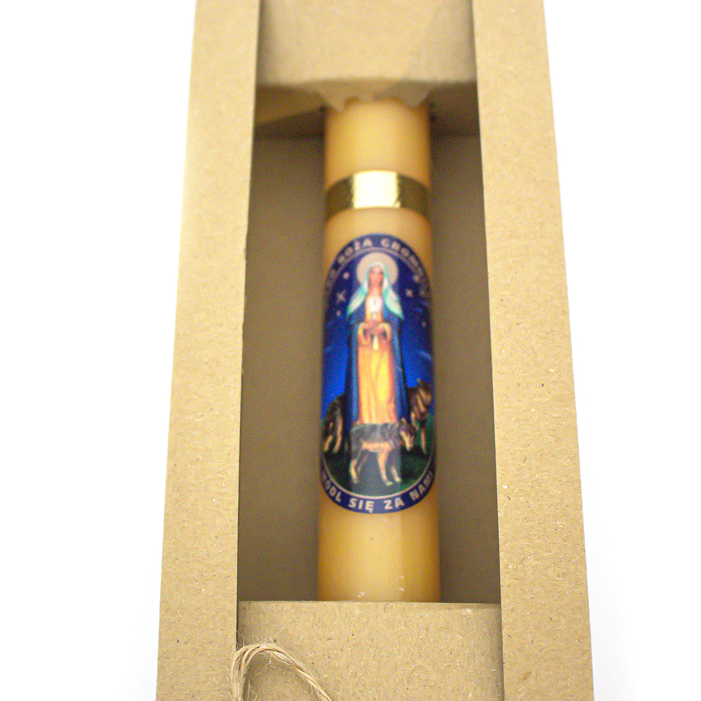 Klasyczna Gromnica świeca Matki Boskiej Gromnicznej z pudełkiem i okapnikiem