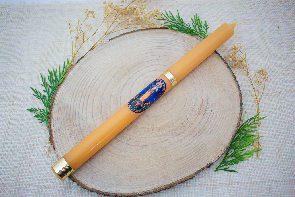Świeca gromnica w kolorze karmelowym to symbol ochrony, ciepła i modlitwy, który od wieków jest obecny w polskiej tradycji. Wykorzystywana podczas święta Matki Boskiej Gromnicznej, obchodzonego 2 lutego, towarzyszy wiernym również w codziennym życiu. W wielu domach gromnicę zapala się nie tylko w dniu święta, ale także podczas modlitwy oraz w ważnych momentach życia rodzinnego. Jej piękny karmelowy odcień przypomina o świetle, które rozprasza mrok, a sama świeca pełni funkcję ochronną, modlitewną i sakralną, będąc wyrazem głębokiej wiary i tradycji.